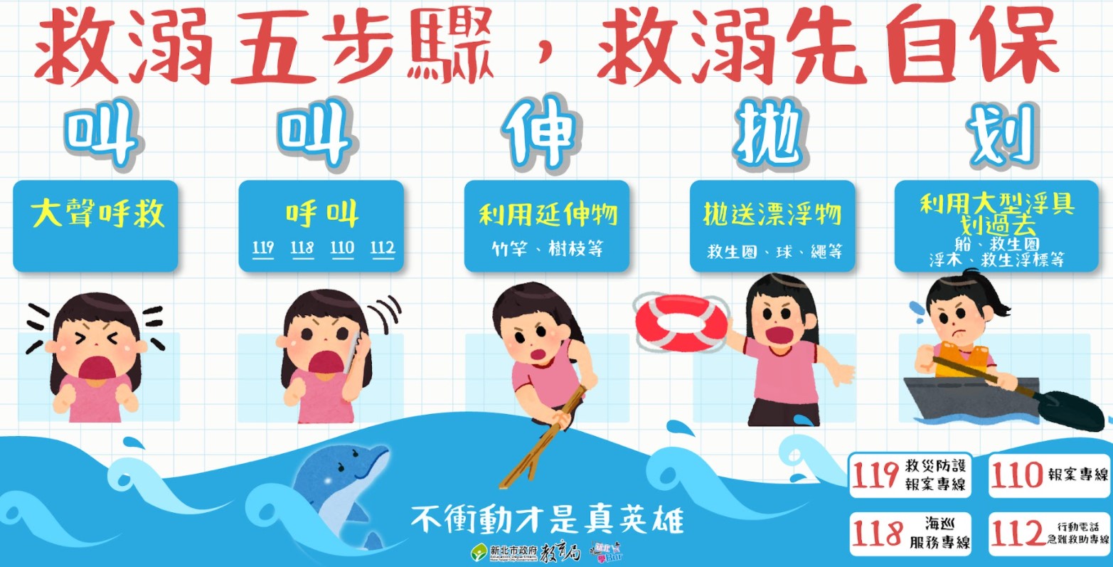- 更多水域安全資訊可參閱內政部消防署https://www.tfdp.com.tw/cht/index.php?code=list&flag=detail&ids=62&article_id=195